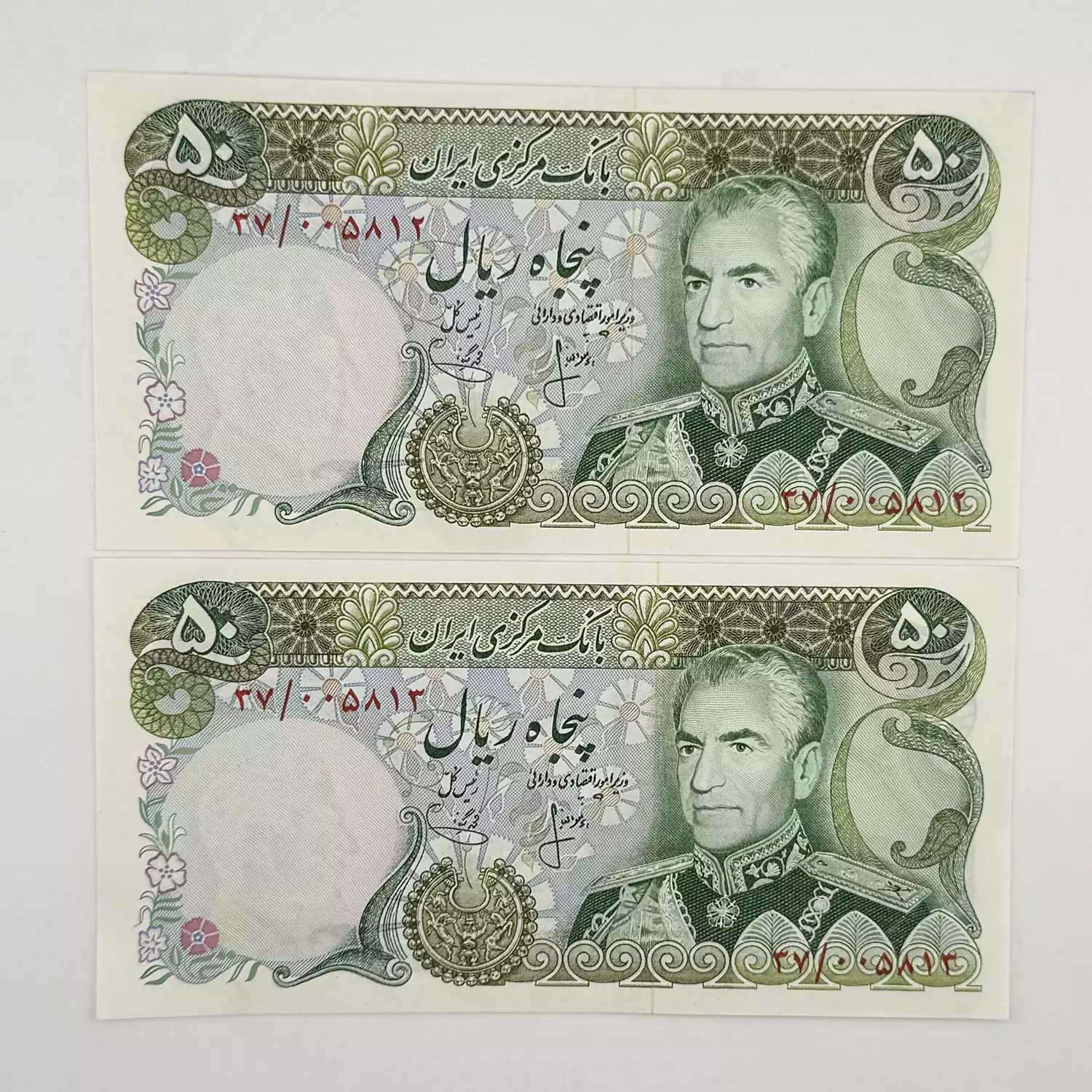 اسکناس 50 ریالی انصاری یگانه 1354 سری 12- جفت سوپر بانکی- 005812