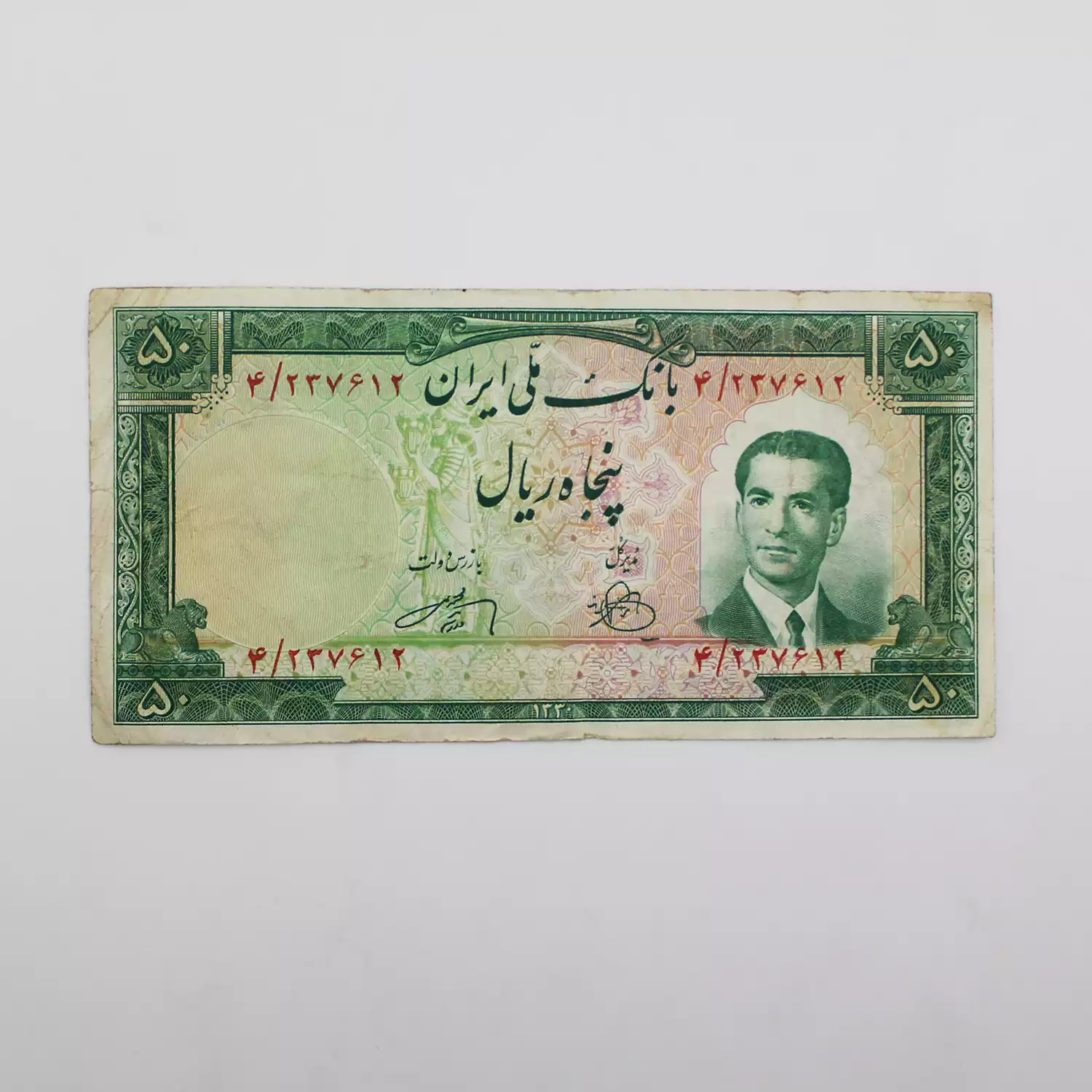 قیمت پنج تومانی کراواتی 1330، اسکناس ۵۰ ریالی کراواتی محمدرضا شاه سری چهارم بانک ملی، اسکناس 5 تومانی پهلوی، امضا زند، وارسته تصویر: کاخ داریوش کبیر با تخفیف ویژه